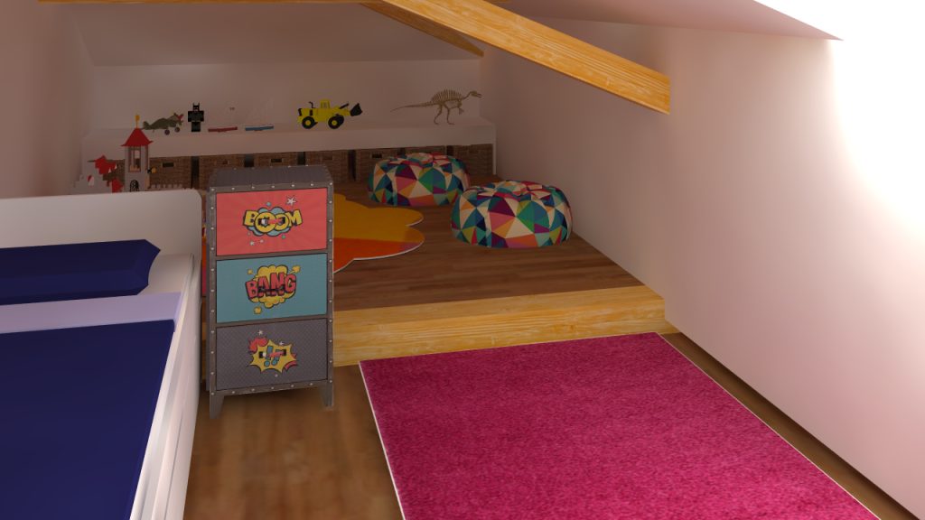 Une zone libre / Une zone bureau / Une zone couchage / Une zone girly