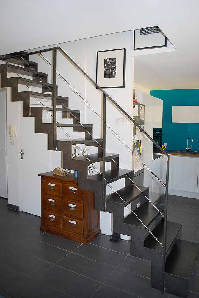 – Transformer de la salle de bain du niveau bas en salle de douche, récupération d’une partie pour un placard d’entrée.