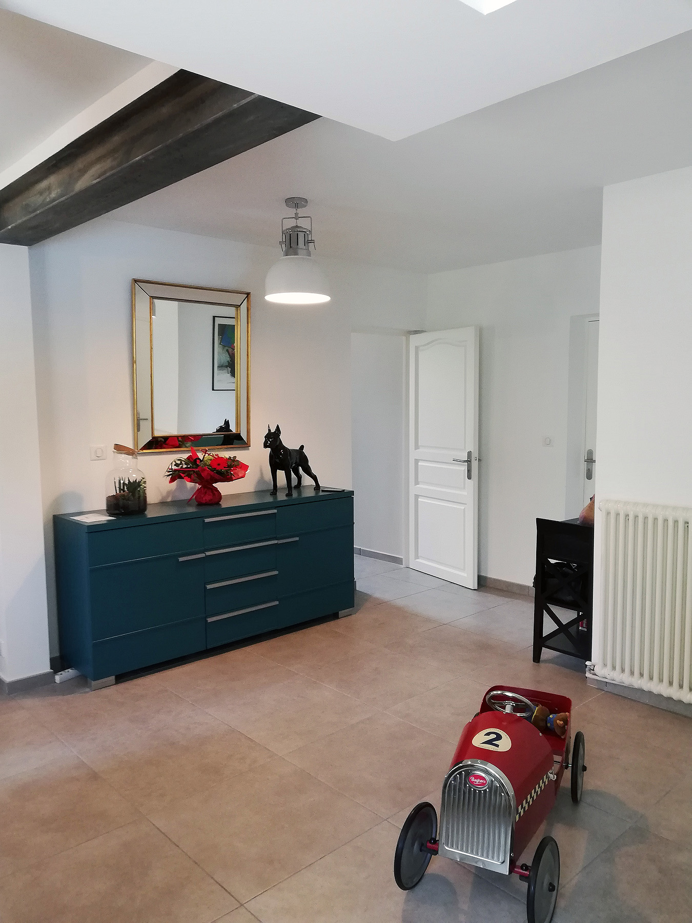 – Réagencer le premier étage en transformant l’ancienne cuisine en bureau et l’ancien salon en grande suite parentale avec des dressings, un espace girly et une salle de douche.